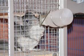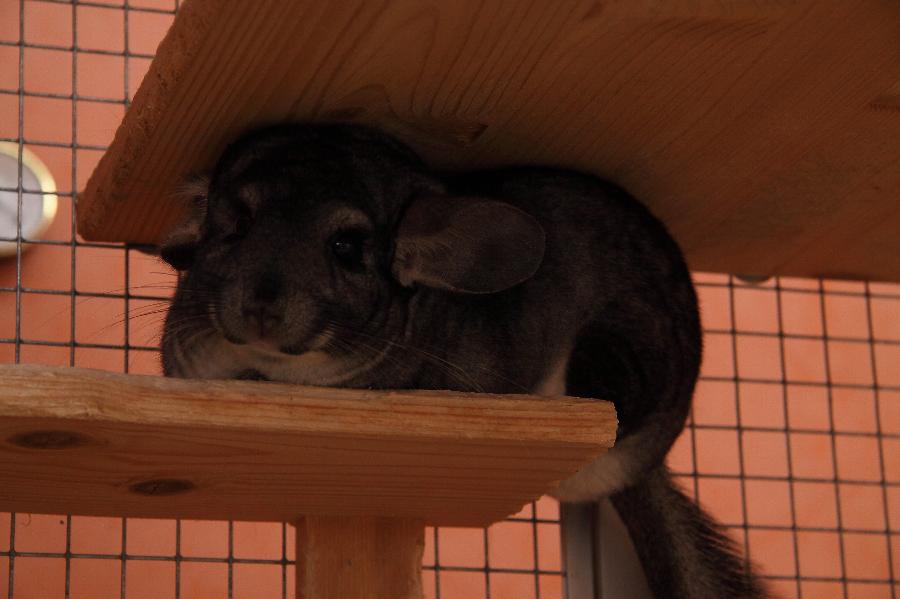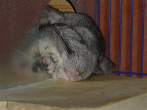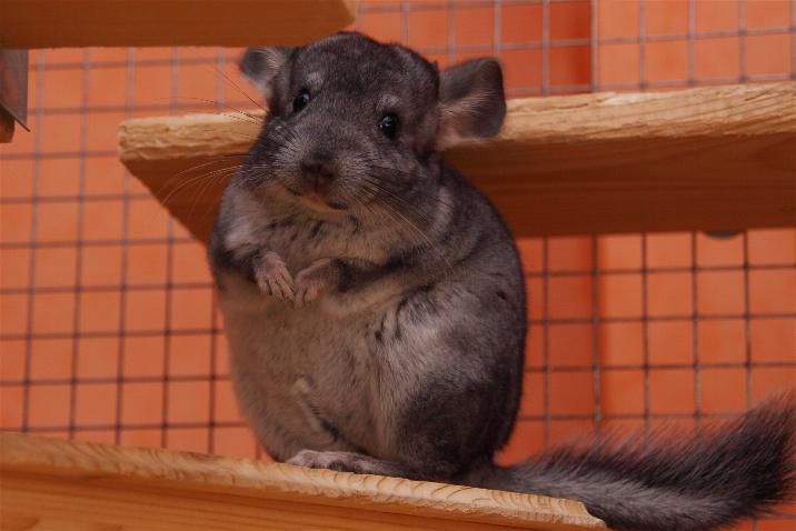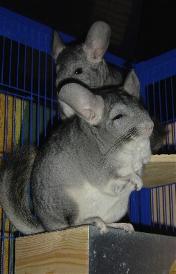 Hera (Züchter Lehmann) wurde am 25.03.2008 geboren. Am 31.07.2010 fand die Vergesellschaftung statt.Die Vergesellschaftung mit Brutus verlief absolut harmonisch und komplikationslos. Die beiden haben sich auf Anhieb verstanden. Hera war sehr scheu und verängstigt in ihrem neuen Heim. Ich hatte schon die Befürchtung, dass sie nie zahm werden würde. Nach ein paar Wochen hatte sie einen Unfall im Käfig und wir mußten in die Tierklinik. Bei der Nachsorge ist wahrscheinlich ein Knoten geplatzt und sie wurde zahmer. Nach knapp 3 Monaten war sie dann fast so zahm wie meine anderen Chinchillas. Hera ist unheimlich intelligent und aufgeschlossen. Ich hatte den Eindruck, dass sie aktiv an unserem Verhältnis mitgearbeitet hat. Sie ist ein sehr hübsches Tier.