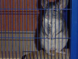 fast zum Verhängnis.Sie wollte im Käfig auf ein höheres Brett springen, verfehlte ihr Ziel und fiel etwas unglücklich in die Einstreu auf den Käfigboden. Bei dem Aufprall erlitt sie eine
