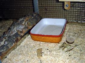 Das Sandbad dient nicht nur der Fellpflege ,sondern auch dem Stressabbau. Aus diesem Grund soll es den Tieren permanent zur Verfügung stehen.